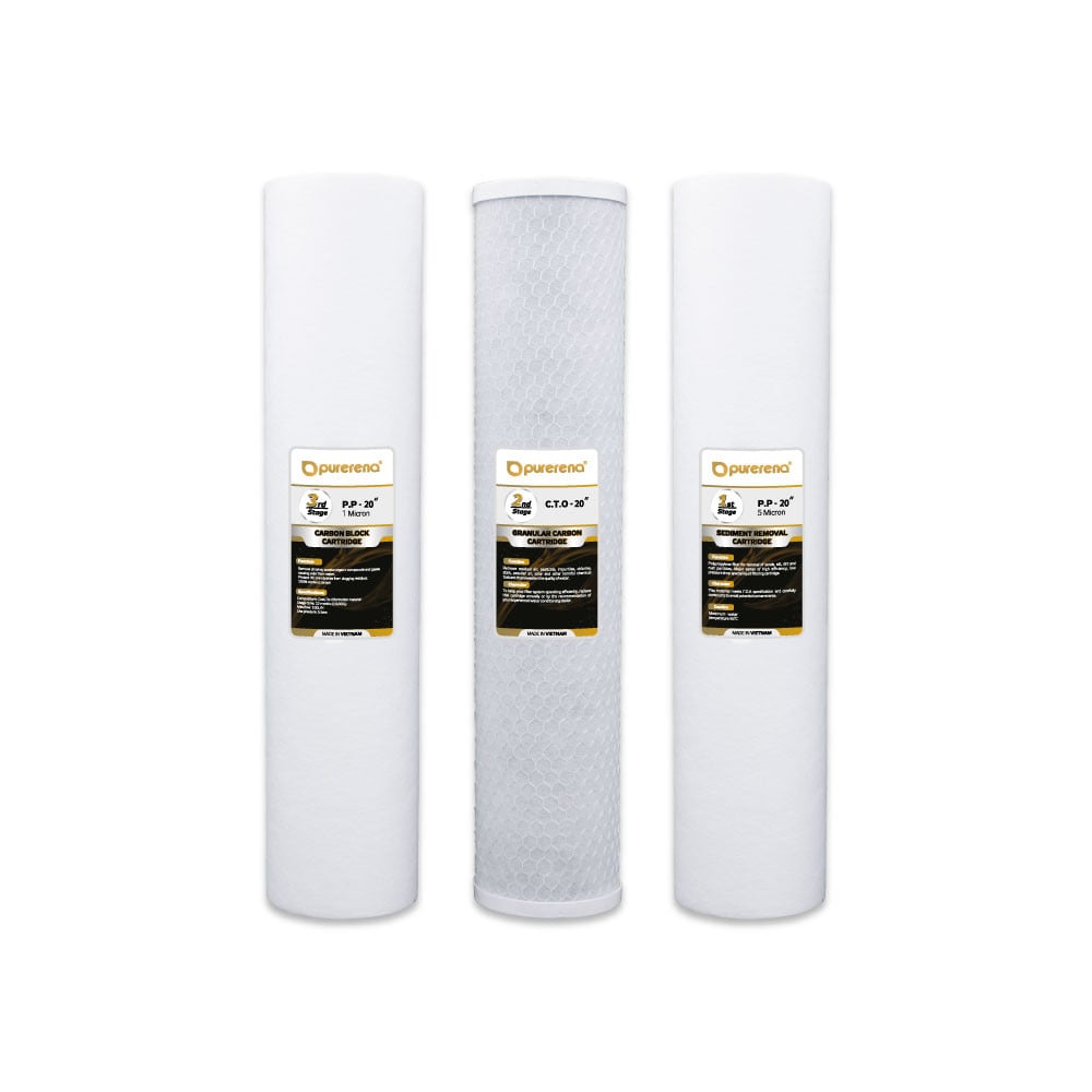 إنَّ طقم فلاتر جامبو ثلاثي المراحل يضمن لك الحصول على مياه نقية وصحية، خالية من الشوائب والكلور والمواد العضوية.